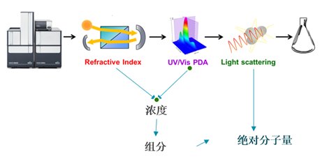 樣品經(jīng)過分離洗脫后,使用共聚物分析方法確定樣品兩種不同組分的濃度和分子量。計(jì)算方法如下: