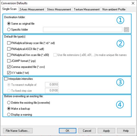 如上設置后,當Data Collector軟件執行絕對掃描程序來測量樣品,在測試完成時,除了生成一個XRDML格式的數據文件外,系統會自動根據Data Viewer菜單Defaults - Conversion...里的設置將其轉換成需要的格式。