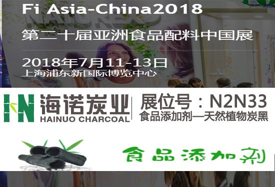 Fi Asia-China2018第二十屆亞洲食品配料中國展將于7月11-13日在上海新國際博覽中心舉行,上海海諾炭業有限公司作為超細天然植物炭粉制造商應邀參加,展位號:N2N33、歡迎蒞臨商洽!