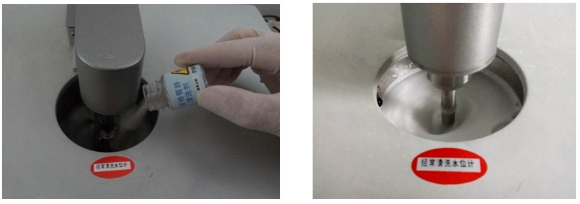 2. 清潔劑的使用方法:將循環分散系統循環池加400ml左右的水(加60℃左右的熱水效果更好),將瓶中的清潔劑全部倒到循環池中,蓋上防塵蓋,開啟循環并將循環轉速調到最大,連續循環清洗10-30分鐘。
