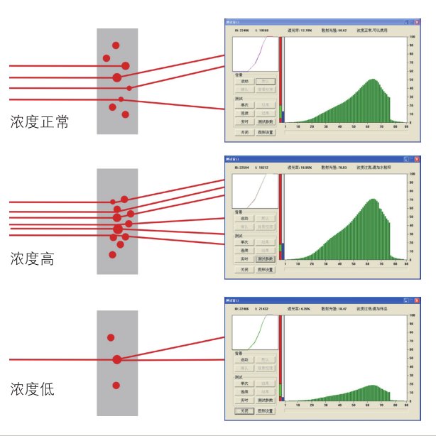一般的,粒度分布測量是通過系統(tǒng)識別和接收光信號來實(shí)現(xiàn)的。 而光信號的強(qiáng)弱又是由懸浮液中的顆粒個數(shù)決定的。以激光法為例,懸浮液中顆粒濃度越高,散射光信號越強(qiáng),但隨之而來的復(fù)散射的現(xiàn)象同時加劇,影響測量結(jié)果;反之懸浮液中的顆粒濃度越低,雖然復(fù)散射現(xiàn)象得到緩解,但信噪比下降,代表性也不夠,同樣影響測量結(jié)果。其它粒度分布測量方法的情況也類似,所以在粒度分布測量過程中合適的顆粒濃度很重要。