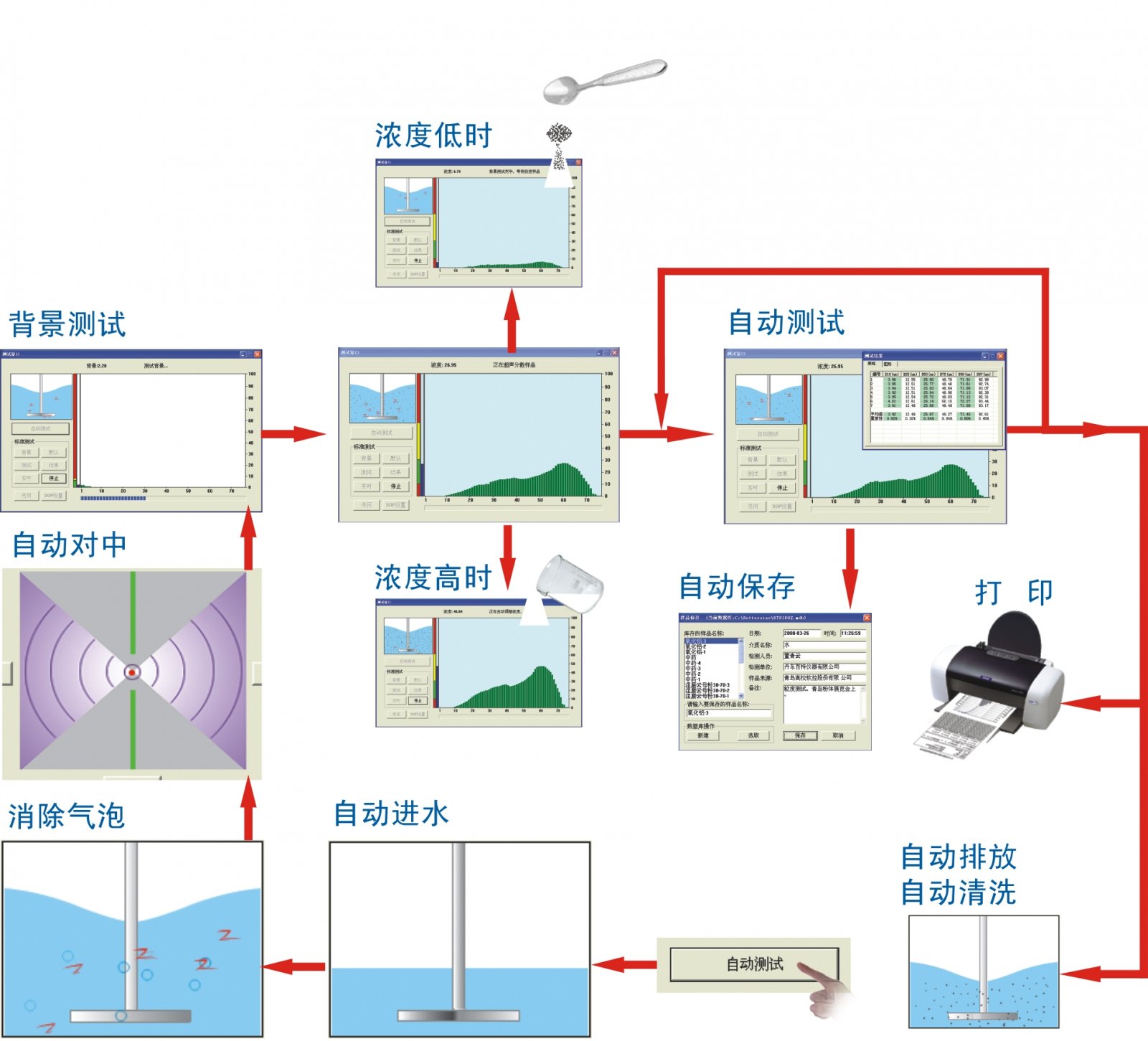 SOP 是英文 Standard Operation Program的縮寫,即“標準化操作程序”。現在,智能激光粒度儀中都配有 SOP 功能來實現粒度測試過程自動化、標準化,實現“一鍵操作”。SOP 不僅能降低了操作人員勞動強度,更重要的是規范了測試條件,減少了人為因素導致的結果偏差,提高了測試結果的一致性。使用SOP 功能前要進行標準化操作流程設定,包括設定循環清洗次數、超聲波分散時間、樣品的遮光率范圍、循環速度、數據存儲、結果打印、自動對中等。