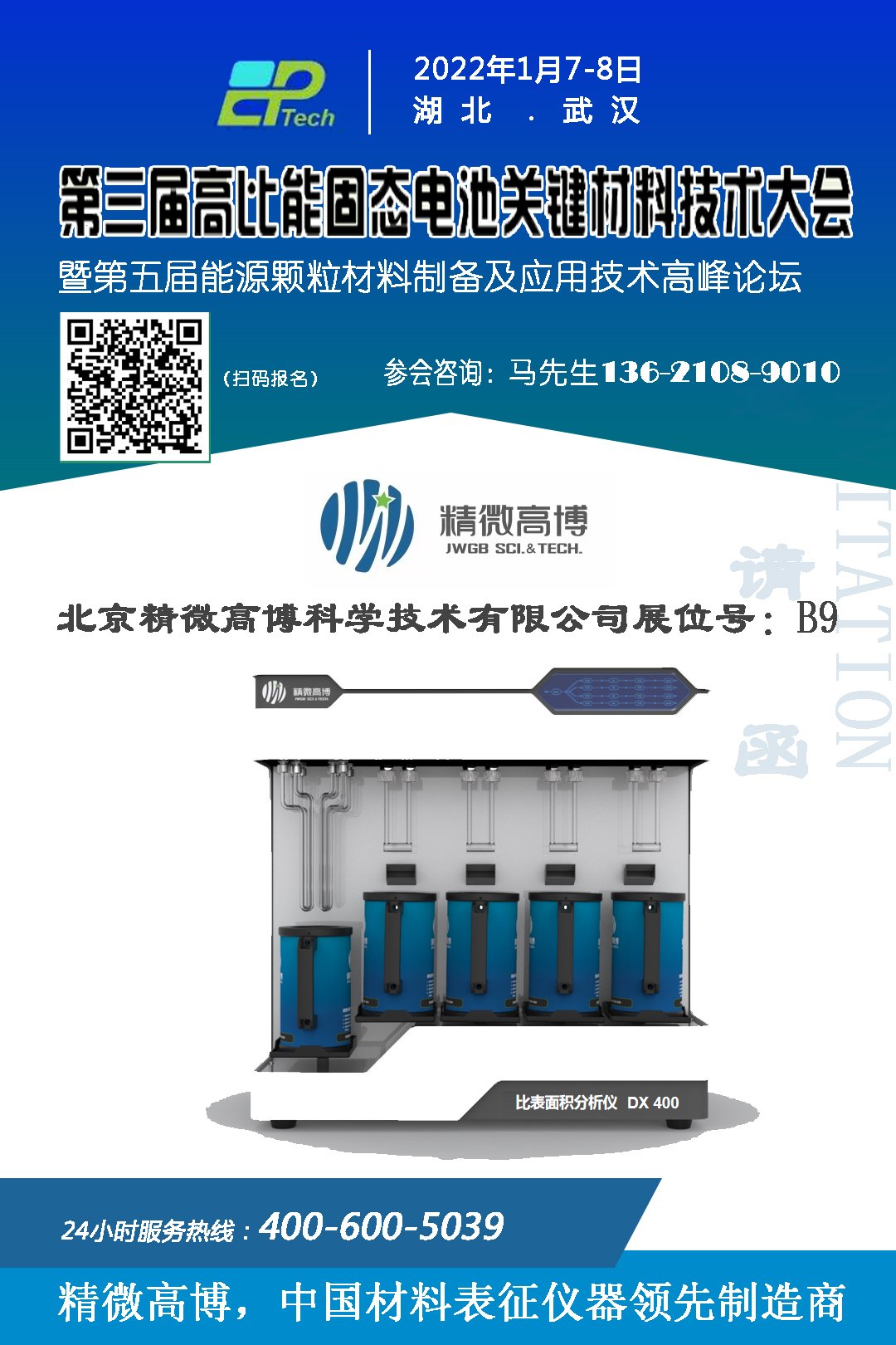 北京精微高博科學技術有限公司作為贊助單位參加此次會議,JW-BK系列比表面及孔徑分析儀、TB系列比表面積及孔徑分析儀和JW-DX動態氮吸附比表面測定儀將亮相本次展會,為廣大客戶帶來電池材料表征全套解決方案。