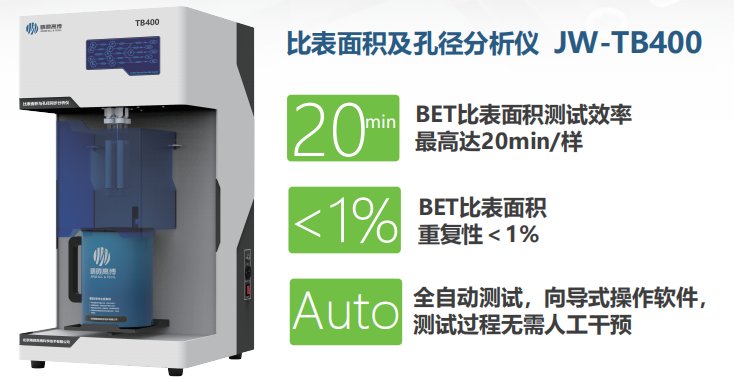 JW-TB系列比表面積及孔徑分析儀非常適合研發部門的針對性研究,采用了靜態容量法這種高精確度的測試與分析方法,應用范圍廣,獲取數據多,測試過程中多個樣品共用同一杜瓦瓶同一氣源進行測試分析,保證分析測試的準確性和重復性,真正實現多站間無差異化分析。獨有的Vtech技術使得TB系列產品的測試效率更高,測試結果更重復、更穩定,更能滿足大孔材料的測試需求。比表面測試范圍:>0.0001m2/g,孔徑分析范圍0.35~500nm。