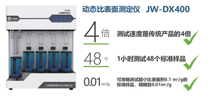 適用于質量控制部門來料檢測的動態儀器,兼備準確度與高效率。JW-DX系列動態比表面測定儀采用專利號為20140320453.2的吸附法專利測試,完全避免了常溫下樣品脫附不完全帶來的測試誤差,非常適合粉體、顆粒材料的在線快速測定。比表面測試范圍:>0.0001m2/g。