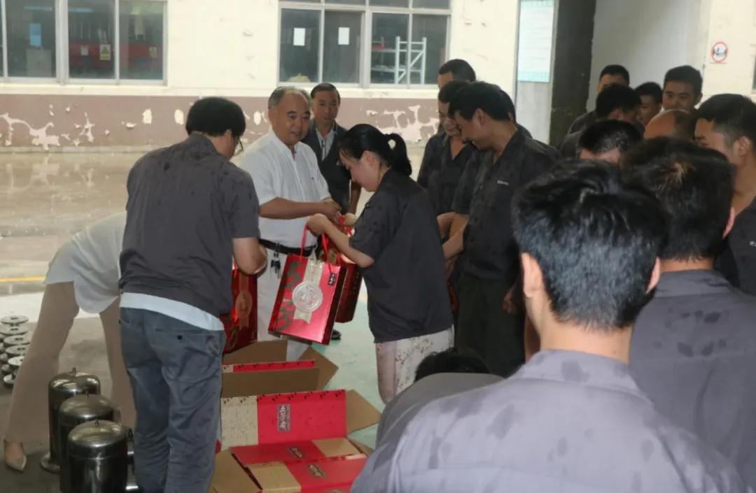 為堅守崗位奮戰一線的員工度過一個喜慶、愉快、和諧的佳節,會議結束后公司董事長吳建明與管理人員一行看望慰問了節日期間依然堅持工作的一線員工,并送去了慰問品,向他們致以節日的問候和祝福。員工們臉上一片喜氣,非常感謝董事長在節日期間給予他們的關心,深刻的感到公司大家庭的溫暖。