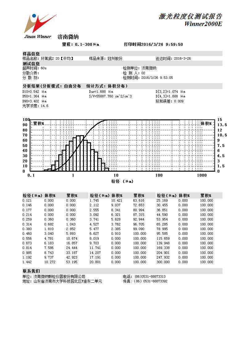 油漆中顏料的粒度及在基料中的分散性將影響漆膜光澤。顏料細度越細,在基料中的分散均勻性越好,有助于形成平整光滑的漆膜。因此油漆的粒度檢測是其生產應用的重要指標。本次油漆粒度測試實驗使用的是Winner2000E激光粒度分析儀,其測試報告如下: