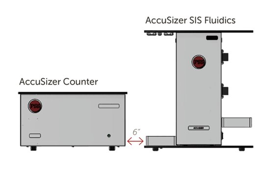 將 AccuSizer 計數器放置在采樣器的右側或左側。AccuSizer 計數器和采樣器流體之間的空間應不小于 15 厘米(6 英寸)。
