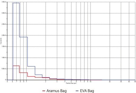 由于這些原因,Aramus袋按照最高程度的清潔度進行生產,并進行了顆粒污染測試。由于Entegris公司同時生產Aramus含氟聚合物凍存袋和用于QC測試的AccuSizer液體顆粒計數器,因此Entegris是唯一有資格提供減少顆粒污染的一次性系統。Aramus袋的亞可見顆粒測試是基于USP <788>標準,并在其他環境鏡應用說明中有很好的記錄。這些測試集中于USP <788>的要求,即≥10μm粒子小于25個/mL和≥25μm粒子小于3個/mL。所有Aramus測試結果都100%符合USP <788>標準。