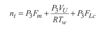 其中nt是總的氣體的物質的量,P3為此時的平衡壓力,Fm是歧管的因子(在前面的問題中有介紹),Vu為此時冷浴液面以上的樣品管體積,Tw是冷浴液面以上的區域溫度,VL是冷浴液面以下的樣品管體積,Tc是冷浴液面以下的區域溫度,FLC是冷浴液面以下的樣品管體積的因子。