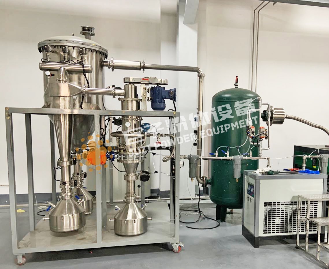 JZDB系列惰性氣體保護(hù)氣流粉碎分級機(jī)是四川巨子粉體設(shè)備有限公司旗下的主力設(shè)備之一,該設(shè)備是在對易燃、易爆、易氧化的物料進(jìn)行粉碎時,加入惰性氣體(氮?dú)狻鍤狻⒍趸嫉龋┳鹘橘|(zhì)實現(xiàn)閉路循環(huán)粉碎,由氮?dú)鈮嚎s系統(tǒng)、氮?dú)鉃V清系統(tǒng)、粉碎系統(tǒng)、分級系統(tǒng)、收集系統(tǒng)、加、卸料系統(tǒng)、氮?dú)饧兌葴y試補(bǔ)充系統(tǒng)、制氮系統(tǒng)以及電氣控制系統(tǒng)組成。在金屬粉末,易氧化原料及易燃易爆物料加工中得到了廣泛應(yīng)用。