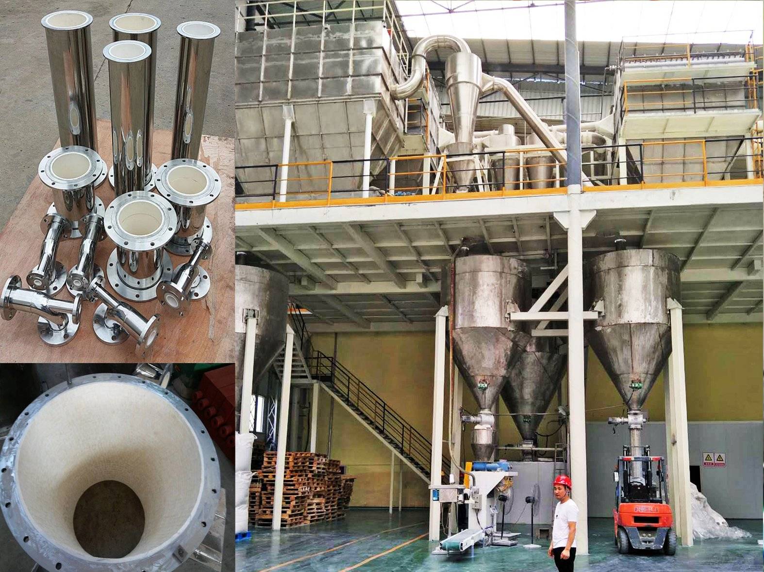 陶瓷內襯氣流粉碎機根據物料的物理特性和成品純度要求,在設備內部襯陶瓷片,增加耐磨性,減小物料對設備的沖擊,增加設備的使用壽命,并精確控制物料在粉碎分級過程中的鐵含量。廣泛應用于金屬材料:鋅粉、鋁粉、鎂粉、錫粉、銅粉、鉭粉、錫鉛合金粉、鉬鐵粉等。