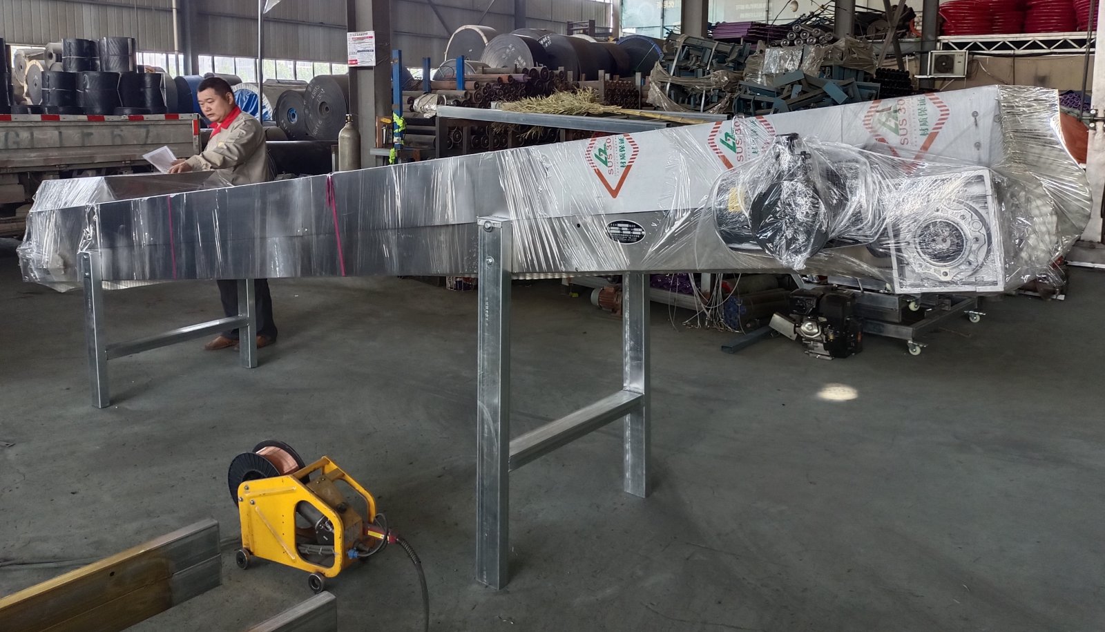 裙邊式皮帶輸送機試機完成,發往江蘇。