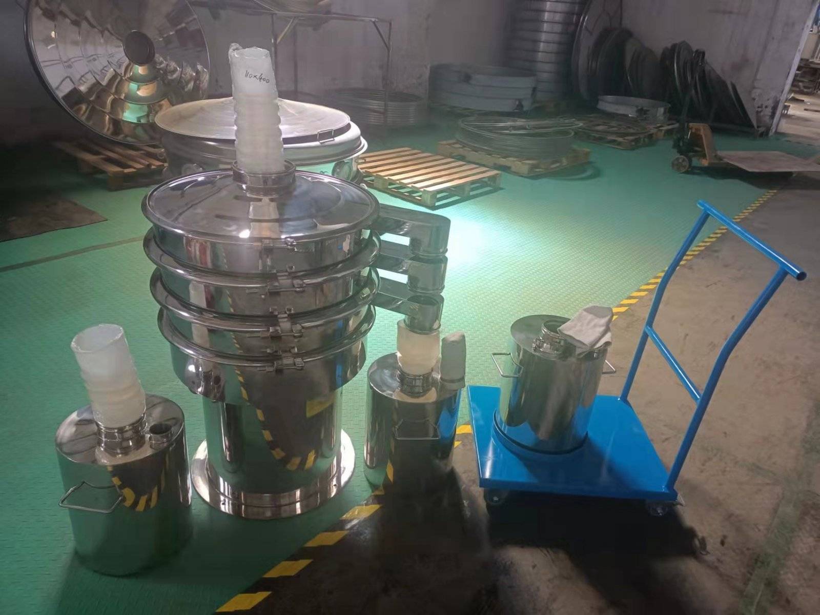 該設(shè)備根據(jù)客戶現(xiàn)場生產(chǎn)條件量身定制,整機板材均采用316L優(yōu)質(zhì)不銹鋼,特制三個不銹鋼接料桶,方便替換接料,小推車的添加方便客戶把接滿物料的料桶移動到合適位置,減少人力搬運。在節(jié)省人力的同時提高效率。