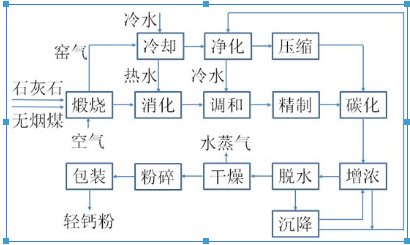 輕質(zhì)碳酸鈣又稱沉淀碳酸鈣(PCC),是利用化學(xué)方法制得。通常是將石灰石等原料鍛燒生成生石灰(主要成份為氧化鈣)和二氧化碳,再加水消化石灰生成石灰乳(主要成份為氫氧化鈣),然后再通入二氧化碳碳化石灰乳生成碳酸鈣沉淀,最后碳酸鈣沉淀經(jīng)脫水、干燥和粉碎便制得輕質(zhì)碳酸鈣。