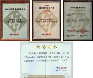 梅特勒-托利多在近期舉辦的2008年中國科學儀器發展年會活動中被評選為“2007年度最受用戶關注廠商”,并榮獲“2007年度最佳售后服務獎”,同時在2007年隆重上市的“超越系列TGA/DSC1同步熱分析儀”和“SevenEasy系列pH/電導/離子濃度儀表”分別獲得“科學儀器優秀新產品”和“最受用戶關注儀器TOP60”大獎。