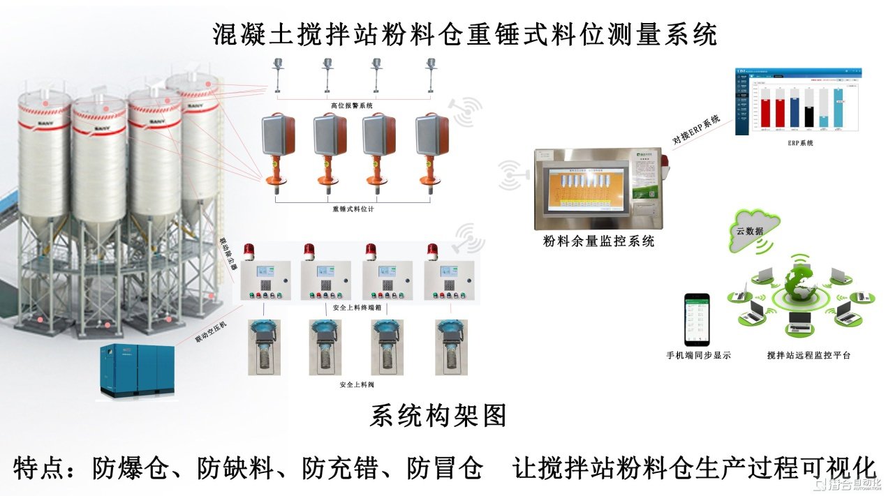 對拌合站(攪拌站)生產而言,根據每天的訂單量確定需要采購的物料量是采購部門每天的例行管理工作,但ERP的計算余量總是不準確,筒倉沒有合適的筒倉高度全量程料位探測產品,敲錘又不方便,且不能多頻度敲錘,所以生產中的缺料現象時有存在,影響正常生產。