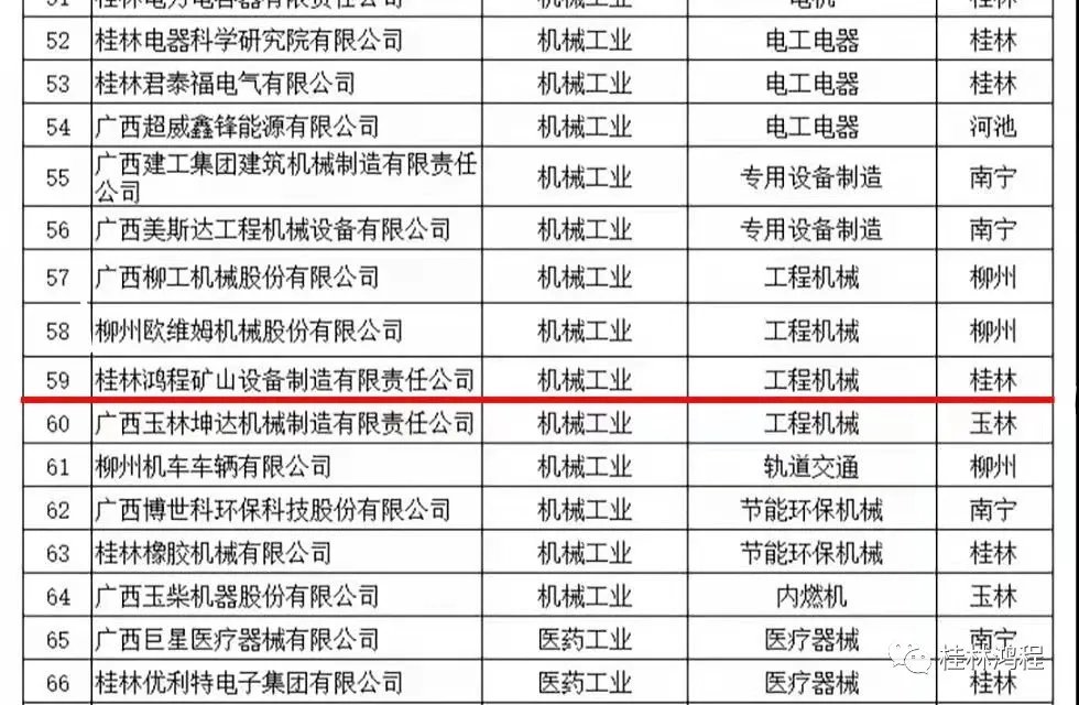 近日,自治區工業和信息化廳公布第一批廣西工業龍頭企業名單,共105家企業入選。其中,鴻程成為桂林21家企業唯一一家工程機械行業上榜企業。