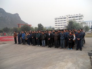 早上九點左右,桂林鴻程公司大門、各車間門口一齊點燃 鞭炮,迎接公司新一年工作的開始,并依例召開工作動員會。會議總結2013年工作中的成績和不足,對2014年工作提出了新的要求。動員會上,公司總裁容北國先生透露,公司一月份以接到的訂單是往年的五倍,希望大家努力完成生產任務,再接再厲創造更好的成績。