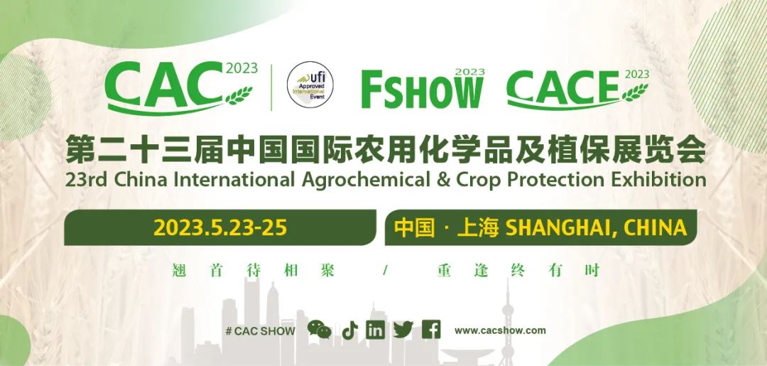 CAC2023第二十三屆中國國際農用化學品及植保展覽會,于5月23-25日在國家會展中心(上海)5.2、6.2、7.2、8.2 館隆重舉辦,共有1,775家國內外企業參展,展覽面積達到10萬平方米。