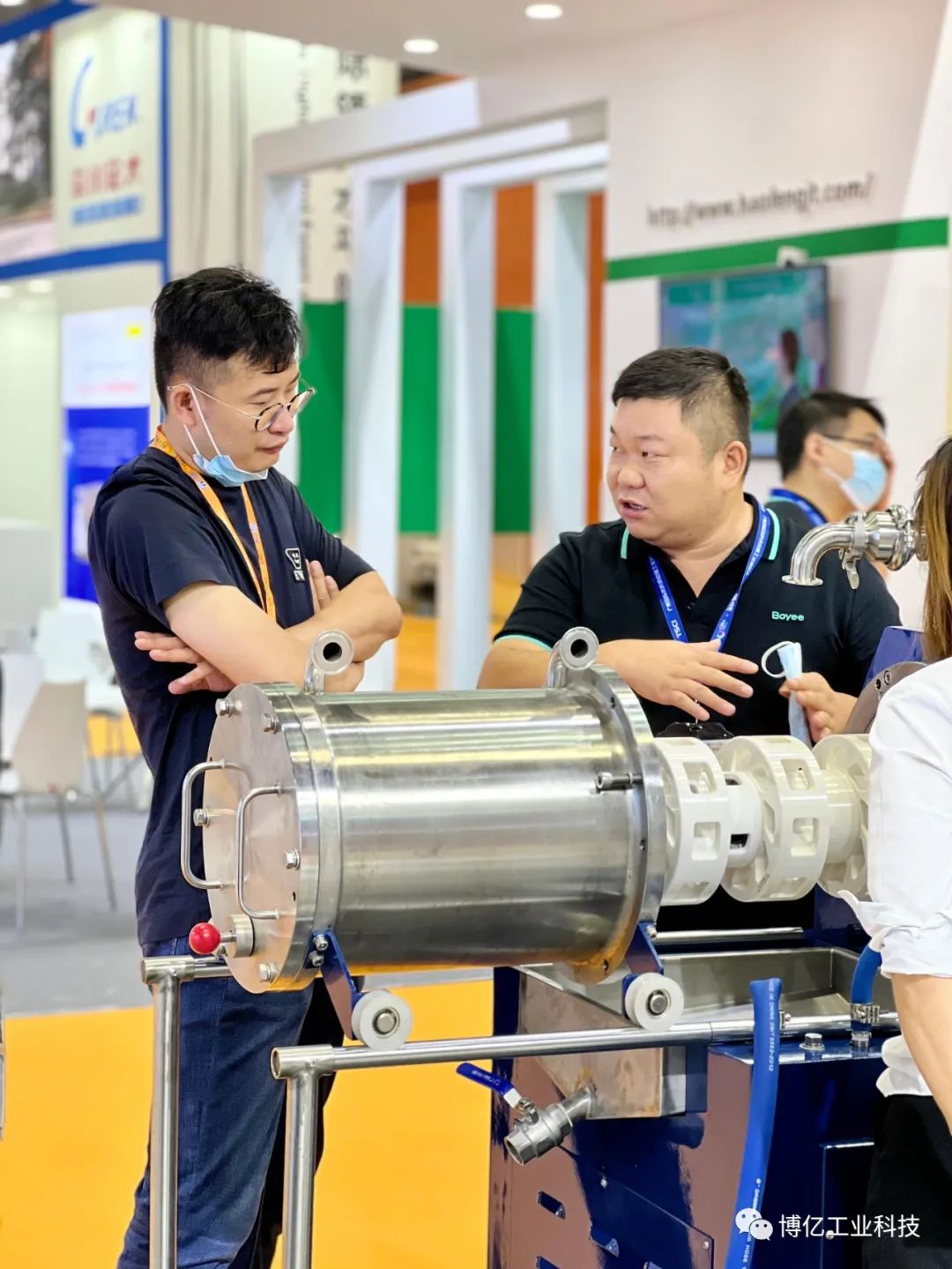 展會現場,我們的砂磨機吸引了不少觀眾駐足詢問及拍照,博億工作人員用專業的水準、熱情的服務,從設備產量產能效率,到設備研磨細度分析,耐心為每一個來到展會的客戶介紹我們的展品---砂磨機。