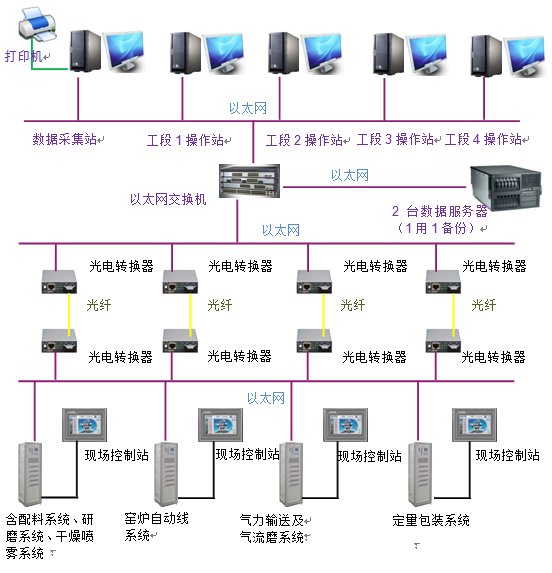 集中數據采集與監控系統(SCADA系統)是制造執行系統(MES系統)的一個最主要的子系統,采用完全開放的標準網絡通信及三級分布式網絡架構,具備當今最先進的工業以太網和現場總線技術,從現場各工段控制站采集實時生產數據實現集中顯示和數據歸檔,并實現對各工段工藝設備進行回路控制、參數調節及信號報警,是生產管理不可缺少的工具。 SCADA系統著重提高生產管理效率,減輕管理人員負擔,實現生產管理自動化與現代化。