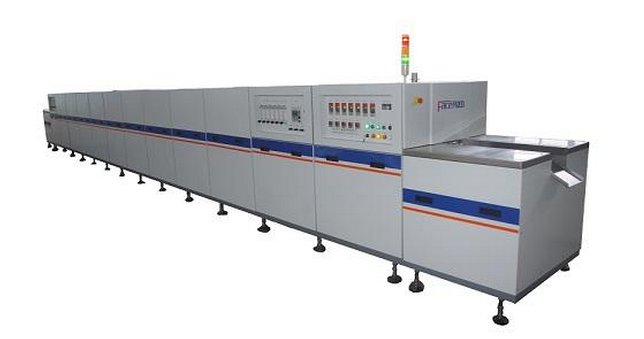 窯爐自動線系統通過氣力輸送系統將微塵物料從噴霧干燥系統輸送到自動線中轉罐,定量向自動線匣缽灌裝物料,匣缽通過自動線定位、封蓋后輸送至窯爐入口,窯爐通過二次氮封隔絕空氣,物料經過預熱、升溫、恒溫燒結實現碳包覆處理,然后通過水冷降溫,二次氮封后,匣缽由窯爐出口回到自動線,匣缽通過自動線定位、取蓋后輸送到翻轉卸料裝置進行卸料,匣缽通過自動線定位/清掃后回到中轉罐供料位置進行循環。