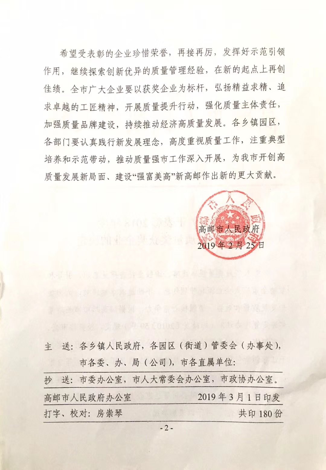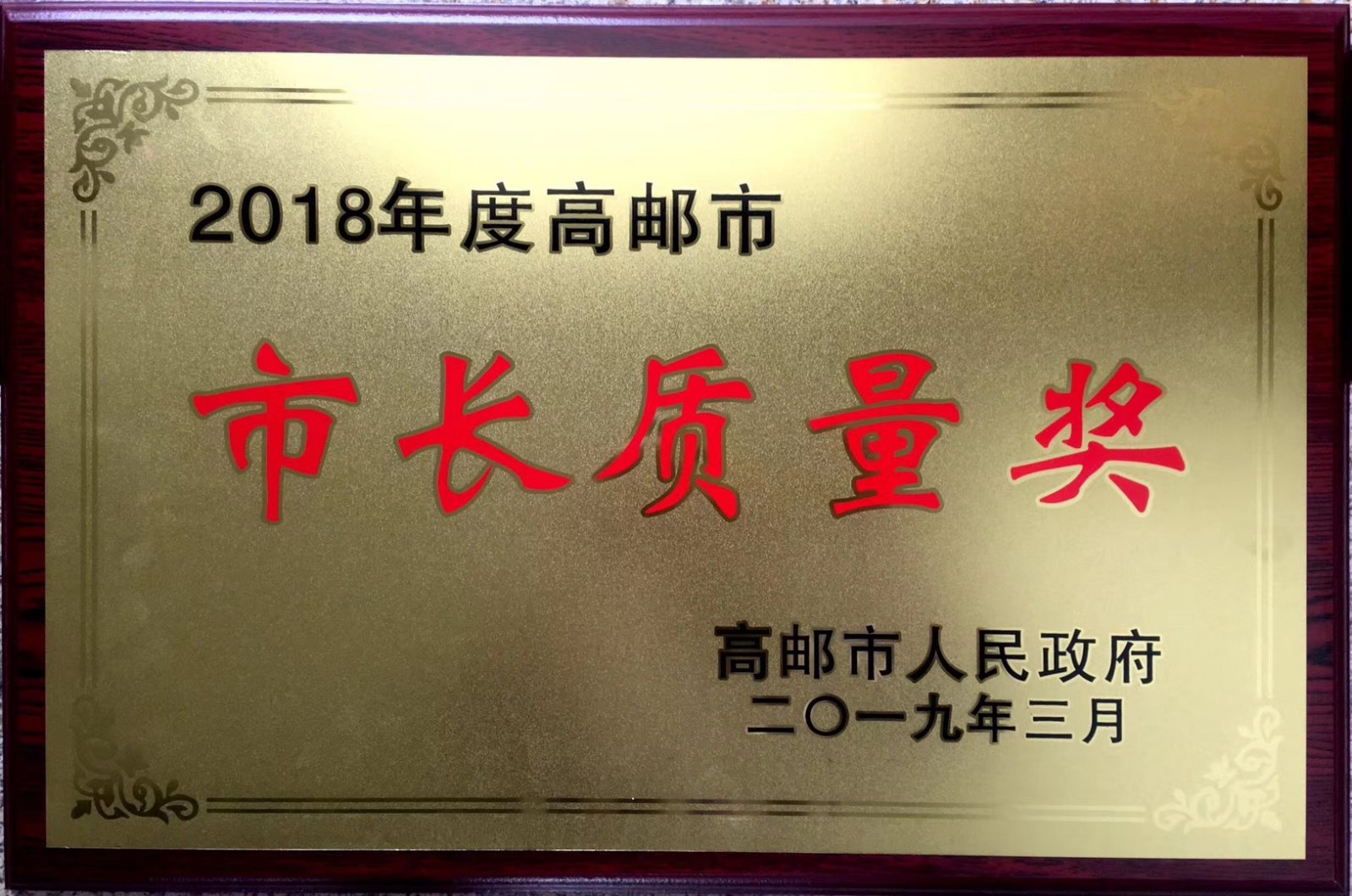 江蘇創(chuàng)新包裝科技榮獲“高郵市市長質(zhì)量獎”