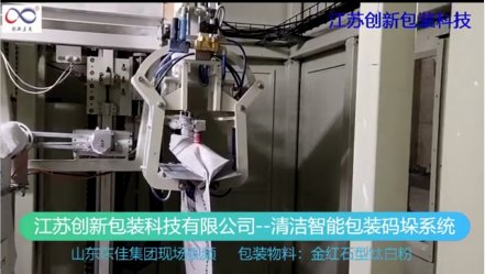 近日,由江蘇創(chuàng)新包裝科技有限公司研發(fā)生產(chǎn)的清潔智能包裝碼垛系統(tǒng)在山東東佳集團成功運行,用于金紅石鈦白粉的計量包裝碼垛。