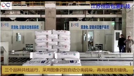三個品種共線運行,采用圖像識別自動分類碼垛,再共線整形纏繞;