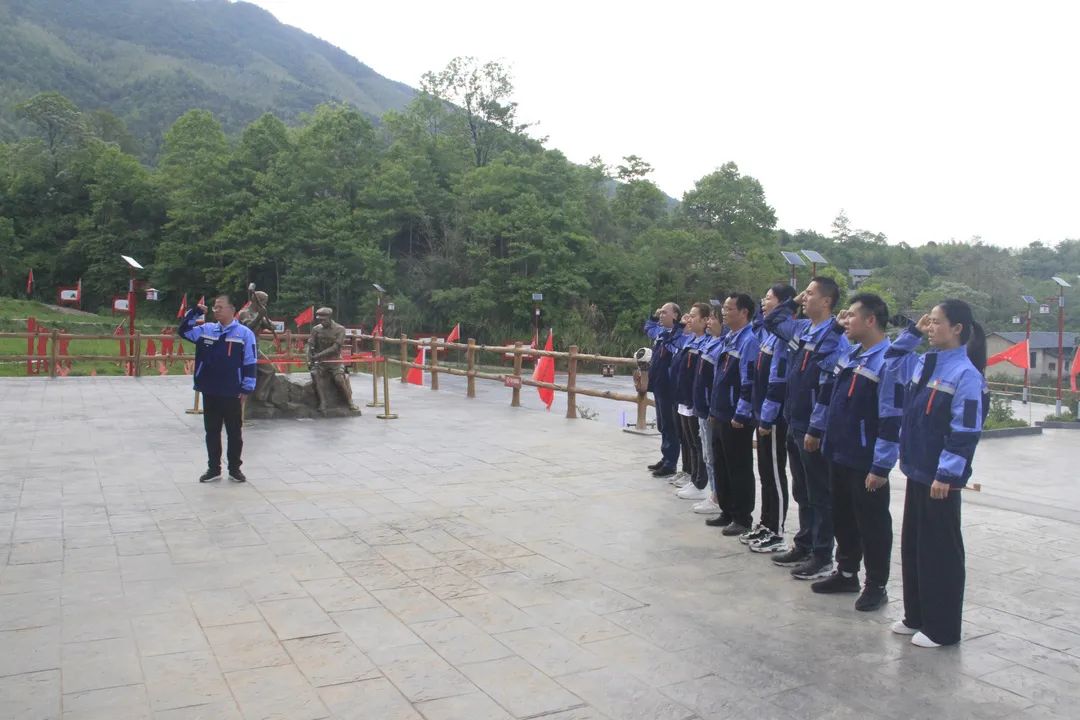 在中華鎢礦公司舊址廣場,全體黨員正衣冠,戴黨徽,莊嚴肅穆地瞻仰毛澤民雕像,以表示對革命先烈崇高的敬意和深切懷念。面對鮮紅的黨旗,全體黨員整齊列隊,舉起右拳,重溫入黨誓詞。在陳列館內,蓑衣、草鞋、撅頭等物件映入眼簾,大家參觀舊址辦公場所,思索歷史場景,聆聽光榮革命事跡,深入了解毛澤民組織前輩采挖鎢砂為蘇區創造經濟價值,打破國民黨反動派圍剿支援革命的功勛及感人故事,深刻感受了革命先烈在艱難困苦中始終堅守共產主義信念的初心和不畏艱難的精神。