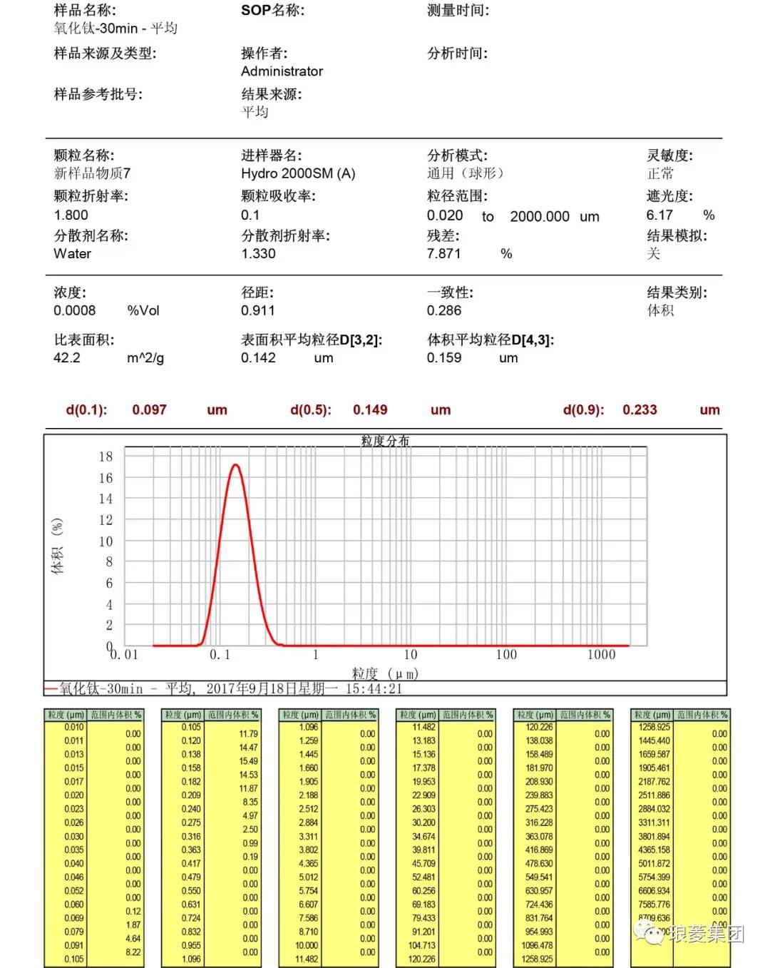 Maivern2000 瑯 菱 機(jī) 械 粒 徑 分 析 報 告↓↓↓(報告一)