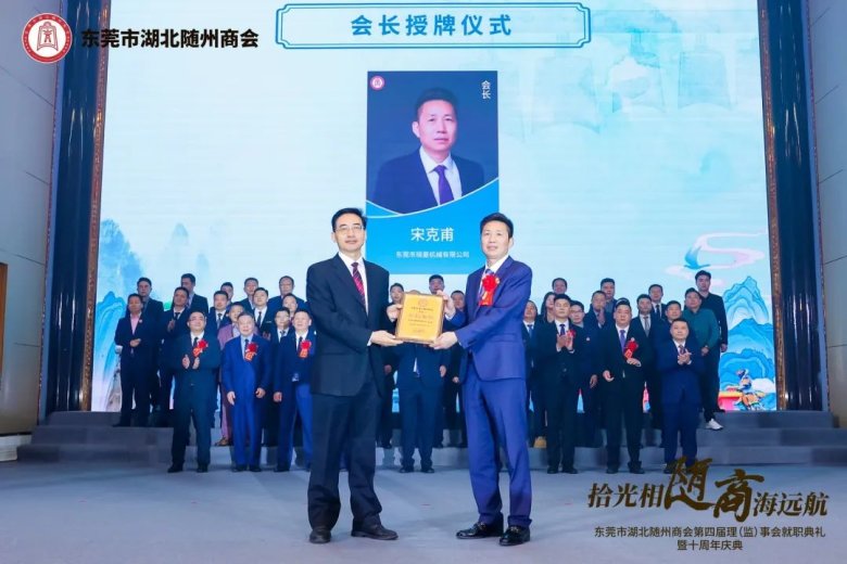 2024年11月22日下午,東莞市湖北隨州商會第四屆理(監(jiān))事會就職典禮暨十周年慶典,在東莞市康帝國際酒店隆重舉辦。在這次主題為“拾光相隨,商海遠(yuǎn)航”重大盛會上,瑯菱智能集團(tuán)董事長宋克甫先生被推選為新任會長,正式就職為第四屆理(監(jiān))事會主席,并發(fā)表了熱情洋溢的講話。此次慶典是東莞市湖北隨州商會發(fā)展的重要里程碑,不僅是對過去十年成績的回顧與總結(jié),更是對未來發(fā)展的展望和規(guī)劃。