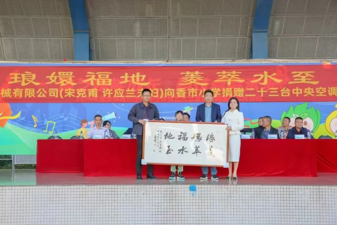 11 月 27 日下午,東莞市香市小學迎來了一份滿溢著溫情與大愛的珍貴禮物?,樍庵悄芗瘓F董事長宋克甫先生與夫人許應蘭女士,帶著對教育事業的深切關懷和對孩子們的無限愛意,慷慨捐贈了價值 39.5 萬元的中央空調與高級音響設備。那一刻,整個校園仿佛被一種無形的力量所包裹,那是愛心的力量,是社會責任與擔當的力量。