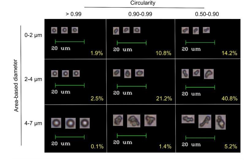 ELP凝聚了由FlowCam成像的圖像。 尺寸和圓度是FlowCam可以測量的40多個屬性中的兩個,用于對凝聚層進行分類。 圖片來自Marvin等。(2018)。