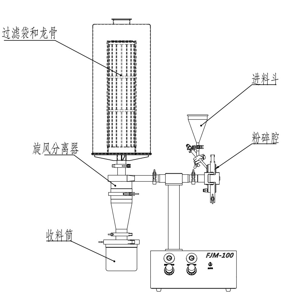 關鍵詞:小型氣流磨;旋風分離;物料收集