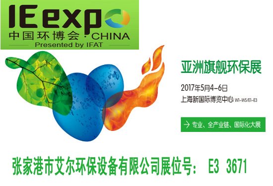 IE expo 2017第十八屆中國環博會將于2017年5月4-6日在上海新國際博覽中心舉行。屆時將有1300多家企業參展,環保產業骨干企業--張家港市艾爾環保設備有限公司誠邀您參觀參展。艾爾環保在E3館3671展位展示其新型褶皺布袋、褶皺式布袋除塵器等優秀的環保產品。