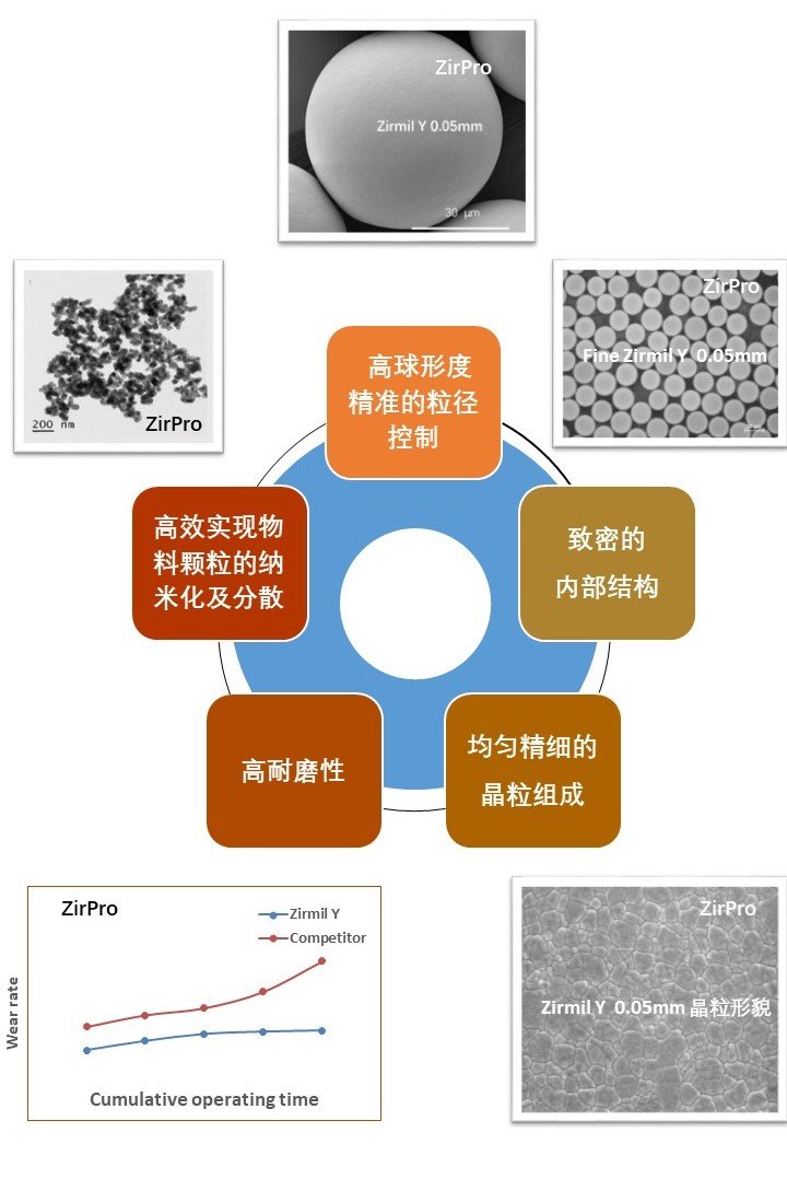最新推出的0.05mm氧化鋯陶瓷超微珠產品(Fine Zirmil? Y),具備以下的顯著優勢: