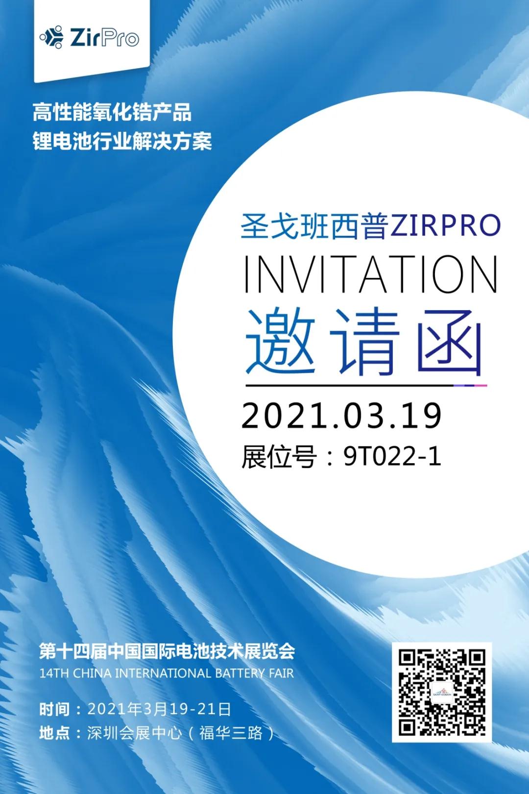 CIBF2021第十四屆中國國際電池技術交流會/展覽會定于3月19-21日在深圳會展中心舉行!圣戈班西普磨介攜高性能氧化鋯產品亮相此次盛會。