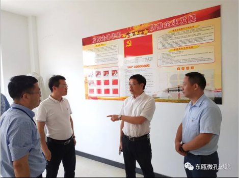方健忠部長一行參觀了公司生產(chǎn)車間,詳細(xì)了解企業(yè)生產(chǎn)、發(fā)展情況,宋志驥總經(jīng)理陪同介紹,并向方健忠部長匯報(bào)了浙江東甌過濾公司的發(fā)展歷程、生產(chǎn)現(xiàn)狀、創(chuàng)新環(huán)境、創(chuàng)新人才、科技發(fā)展和近年發(fā)展成績等;公司黨建、工會(huì)等方面工作;公司二期項(xiàng)目的總體規(guī)劃、布局設(shè)計(jì)、工程建設(shè)及推進(jìn)落實(shí)情況。