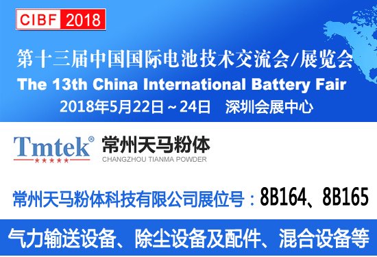 天馬粉體也將亮相CIBF 2018--世界電池行業(yè)的中國(guó)盛會(huì)。