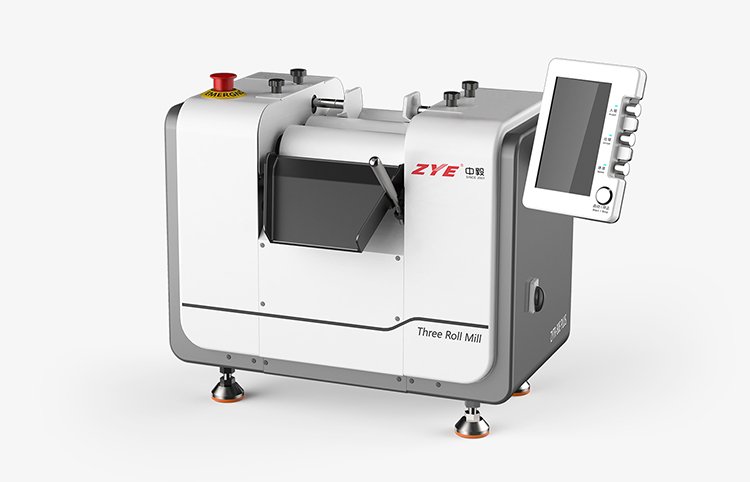 針對上述問題我們使用 ZYTR-80E Plus 三輥機(jī)來均勻分散此類材料。ZYE三輥機(jī)是通過水平的三根輥筒表面互相擠壓、不同轉(zhuǎn)向及速度差所產(chǎn)生的剪切力而達(dá)到研磨分散的效果,且在ZYE三輥機(jī)精密的間距控制下能夠做到不破壞材料的表面形貌而達(dá)到解聚的目的。