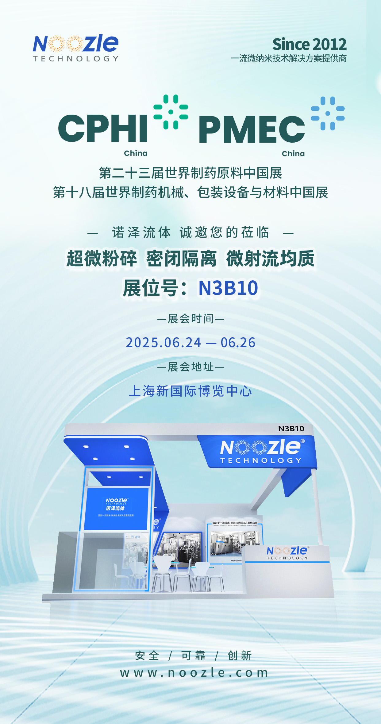 本次CPHI,諾澤將攜旗下多款明星產品:超微氣流粉碎機、微射流均質機以及密閉隔離系統等型號產品亮相展臺,敬請期待!