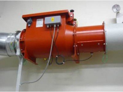 爵格工業(yè)化學爆炸隔離裝置的觸發(fā)方式與前述的高速隔離閥解決方案相同。在接收到觸發(fā)信號后,它們會快速釋放滅火劑到導管中,阻止火焰及燃燒材料在互連的設備間蔓延。在大型導管中,化學爆炸隔離裝置會通過一個 3 寸管徑的管子輸送滅火抑爆劑,而在小型導管中,則會使用一個連接至安裝于支架上的滅火抑爆劑輸送系統(tǒng)頂部的1 寸管徑的管子輸送滅火抑爆劑。