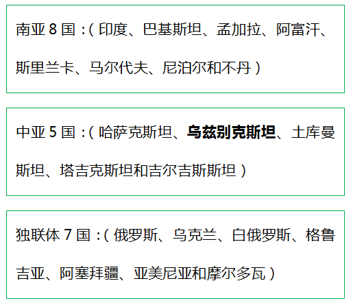 一帶一路沿線國家名單