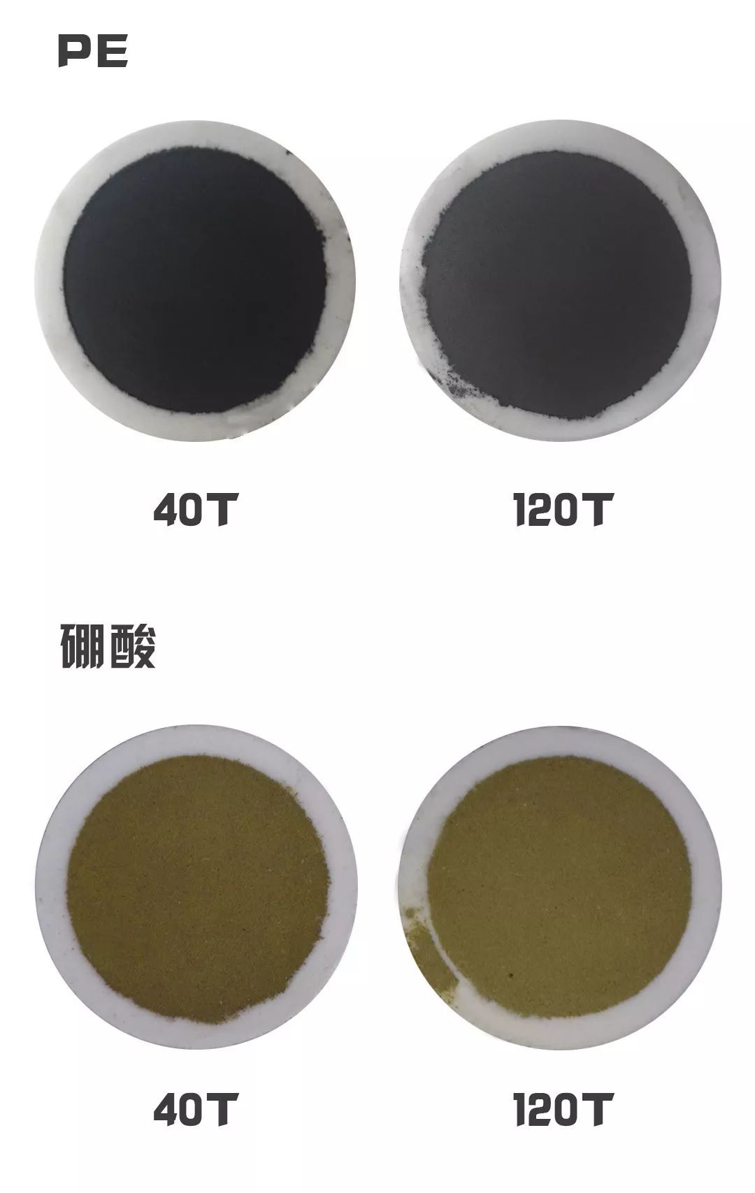 (5)硼酸的剛性導致高壓制樣時容易崩出,而聚乙烯則不會。