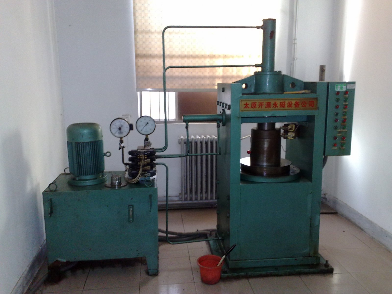 總工程師董中天不甘心這個項目就此擱置,就又對整個設備進行了重新的設計,這次獲得了成功,這就是中國第一臺釹鐵硼磁場壓機。中科院由此組織了一個鑒定會,在會上,專家組建議董中天單獨成立一個公司,專做磁性材料專用設備,這就是金開源公司的前身。