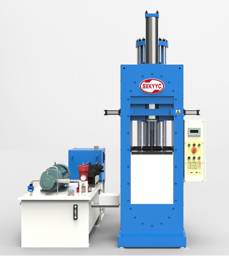 金開源的初代機型使用了導柱和單滑塊結構,利用油缸把滑塊拉開,導柱升起即可放料,滑塊合上即可加壓。高壓腔位置是固定的,無需像傳統壓機的高壓腔來回走動,因此占地面積小,操作效率更高。