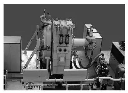 目前,俄羅斯的等離子旋轉(zhuǎn)電極制粉設(shè)備是領(lǐng)先世界的,圖5是俄羅斯Granule 2000型等離子旋轉(zhuǎn)電極制粉設(shè)備,其設(shè)計(jì)原理和結(jié)構(gòu)與圖4完全不同,靜態(tài)真空系統(tǒng)、動(dòng)態(tài)真空系統(tǒng)、等離子發(fā)生器、棒料旋轉(zhuǎn)系統(tǒng)、艙室設(shè)計(jì)、加料設(shè)計(jì)、氣體系統(tǒng)等都優(yōu)于國(guó)內(nèi)的PREP設(shè)備設(shè)計(jì),Granule 2000型等離子旋轉(zhuǎn)電極制粉設(shè)備轉(zhuǎn)速能達(dá)到20000~25000r/min。
