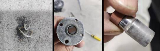 案例二:先導管內充滿了雜質(氣包及管路噴砂處理時殘留的砂粒及安裝管道使用的生料帶毛邊),造成動鐵芯卡死無法關閉。
